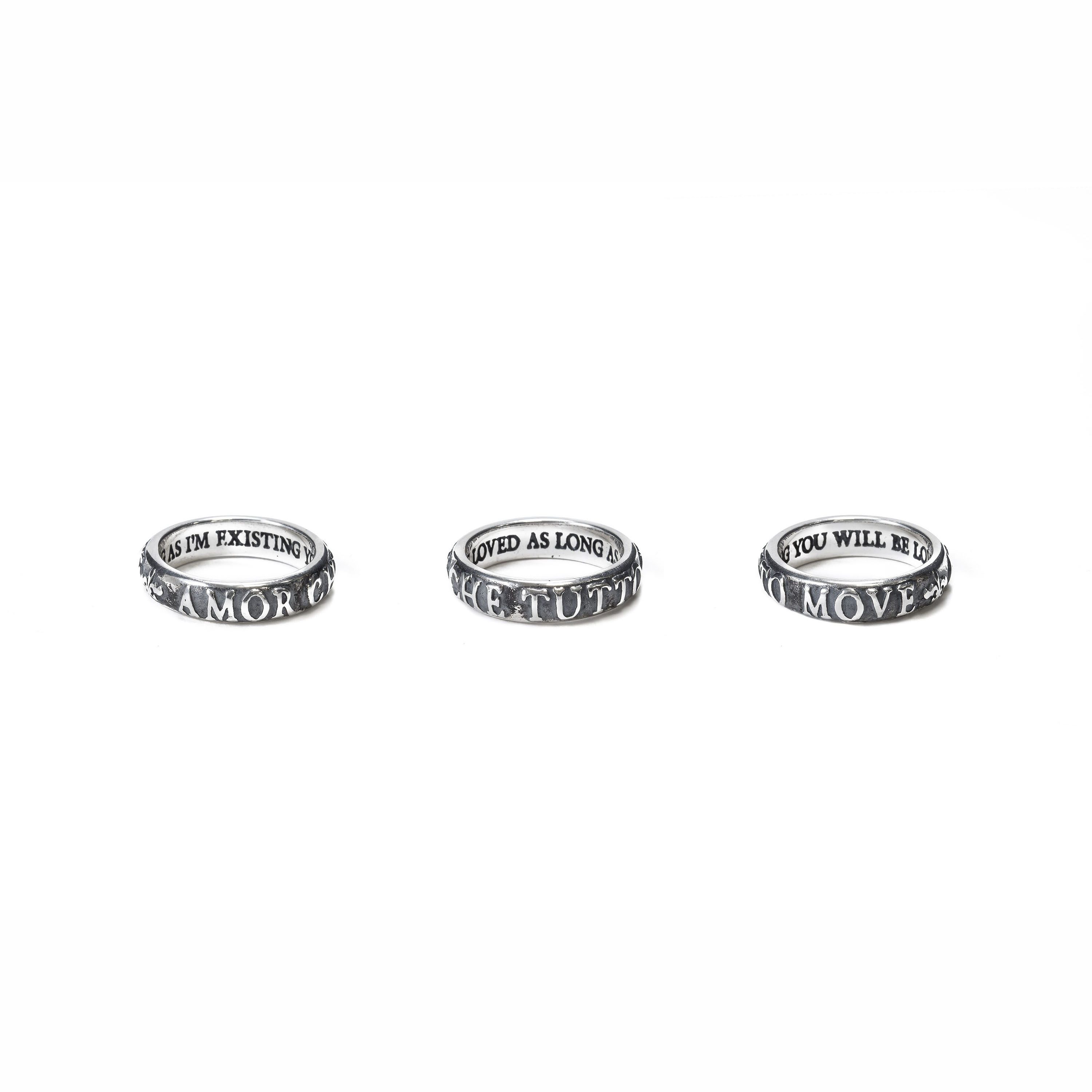 “AMOR CHE TUTTO MOVE” (L’Amore Muove Tutto), una citazione ispirata all’ultimo verso del capolavoro di Dante Alighieri, “La Divina Commedia” (A.D. 1320). Questo romantico anello fatto a mano celebra l’amore come una forza inarrestabile, che plasma la stessa essenza dell’esistenza, e rivela la sua notevole capacità di muovere montagne e manifestare l’eccezionale.
