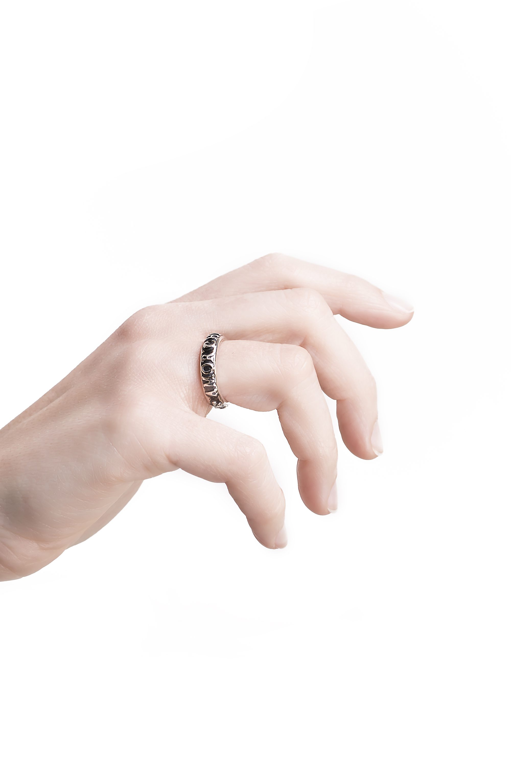 La lavorazione orafa dei gioielli Coreterno mette la manualità al di sopra della tecnologia, attraverso il recupero di antiche tradizioni che affondano le loro radici nell’antica Roma, il metallo battuto a mano, l’incisione, il fuoco vivo. Gioielli nei quali si percepisce la mano di colui che li ha creati, imperfetti e unici come l’essenza dell’uomo stesso. In questo metallo vengono incise e forgiate parole che esprimono l’intelletto, la poesia dell’essere umano e la sua capacità di creare il proprio destino.