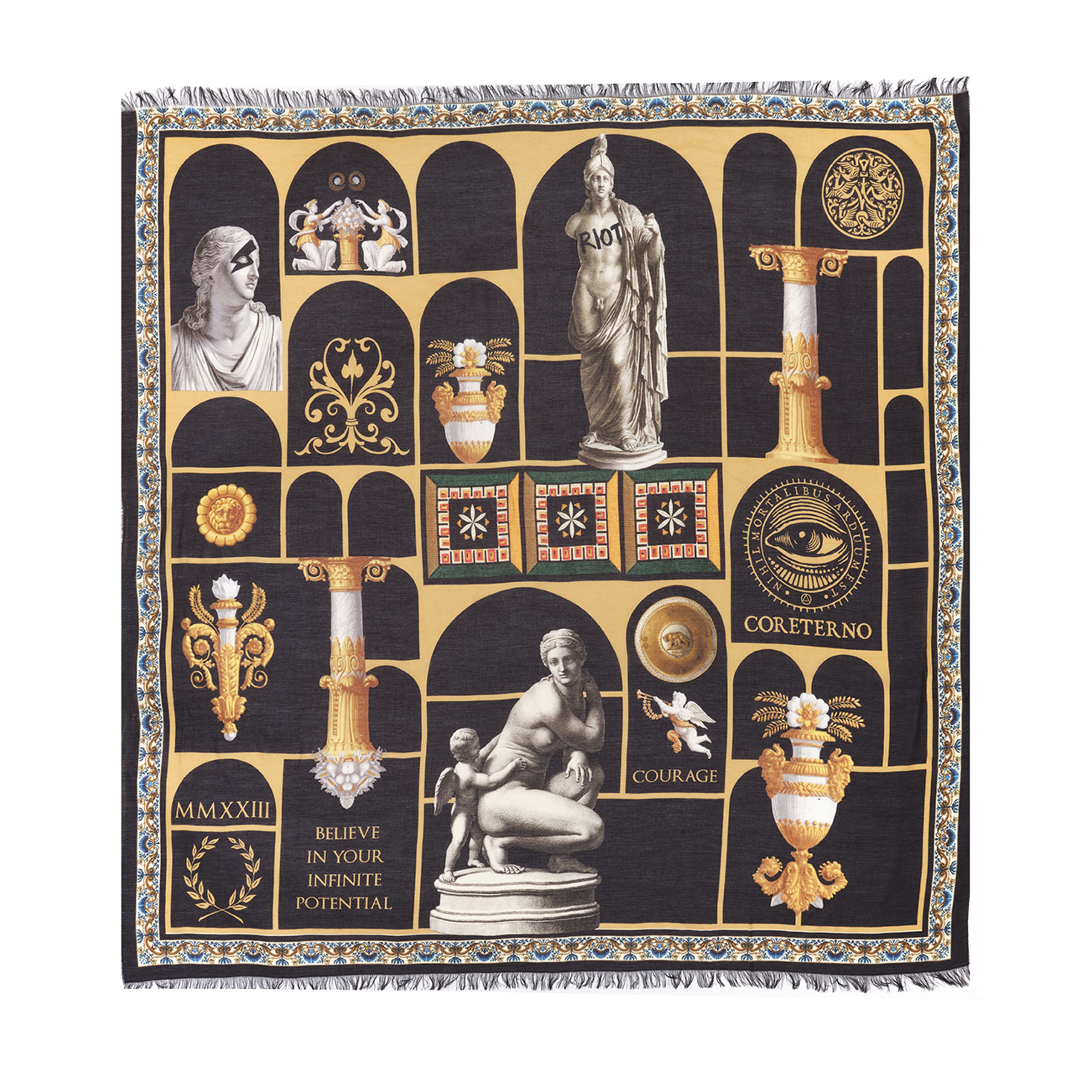The rebellious and romantic soul of Coreterno shouts its great expressive power in the exclusive sumptuous gorgeous scarves.