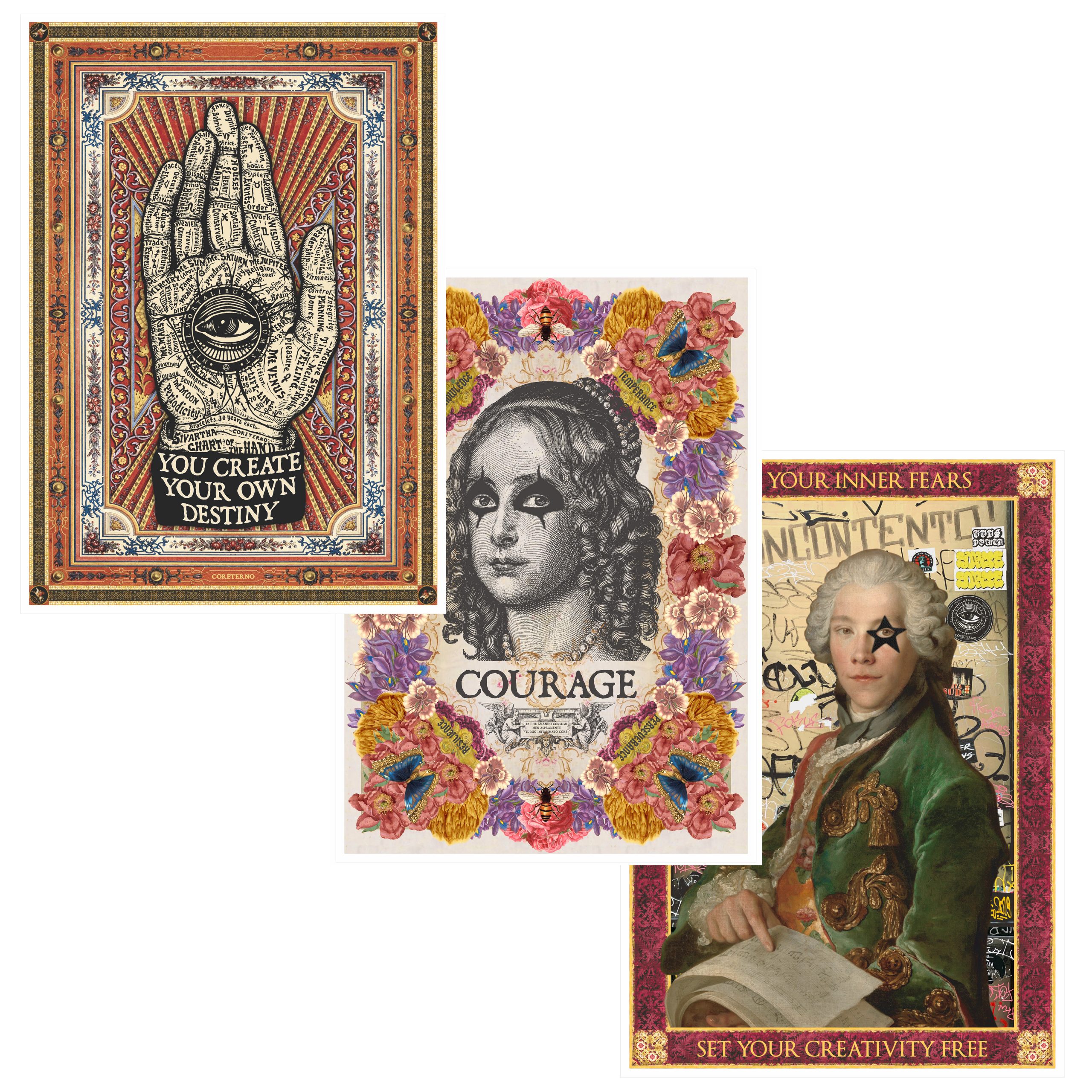 Antique maps, street art, odd portraits and old encyclopedia drawings inspire and convey messages of positivity and empowerment, according to the philosophy and aesthetics of Coreterno. Ideal as a gift for beloved friends, rebellious lovers or fierce enemies.