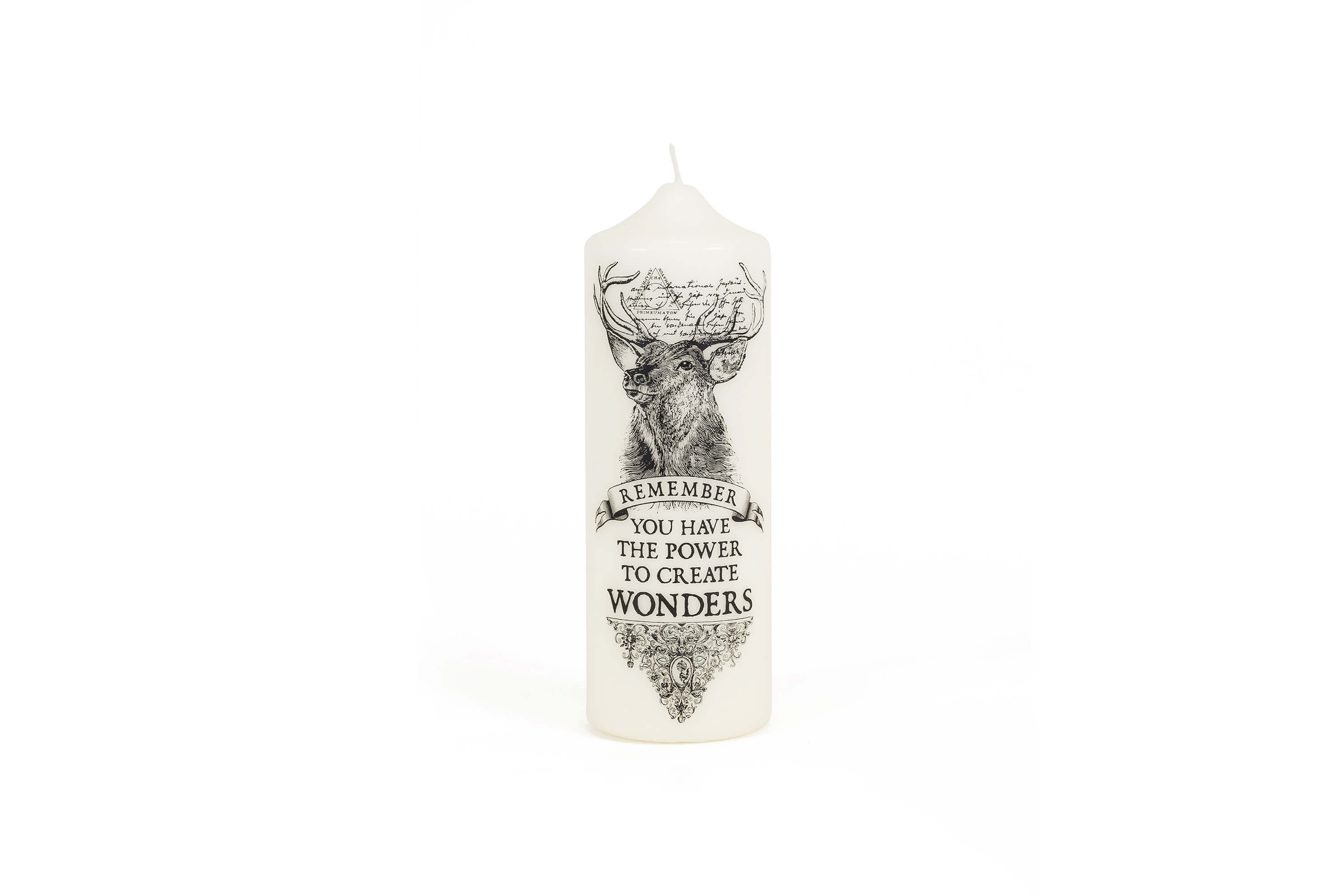 Our Visionary pillar candles represent the triumph & protection of light over darkness, embodying messages of power and positivity to heal the heart and soul. They are made in the ancient Italian tradition with unscented mineral and vegetable wax.